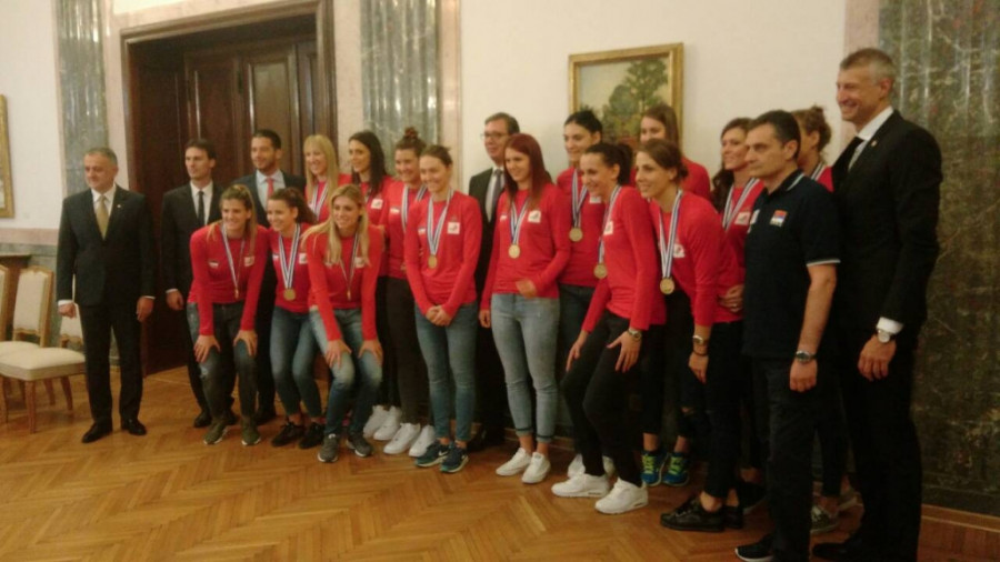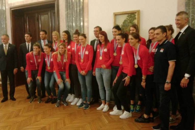 Predsednik Srbije Aleksandar Vučić primio je srpske odbojkašice posle osvajanja zlatne medalje na Evropskom prvenstvu u Azerbejdžanu i Gruziji.