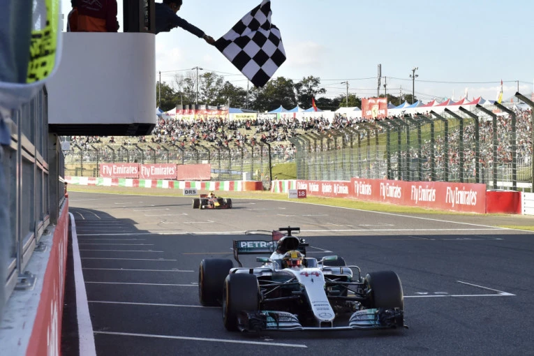 Vozač Mercedesa, Britanac Luis Hamilton, pobedio je na trci za Veliku nagrdu Japana, na stazi u Suzuki i došao na korak od osvajanja četvrte titule u karijeri, jer je Sebastijan Fetel iz Ferarija, ponovo morao da odustane zbog tehničkih problema.