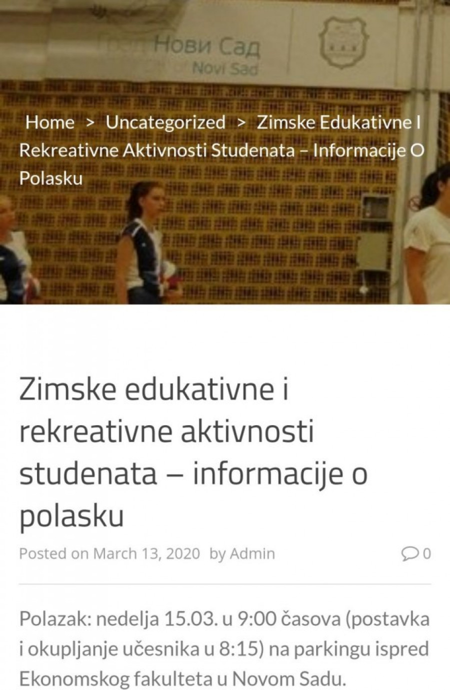 Jedino na šta su skrenuli pažnju studentima organizatori "Zimske edukativne i rekreativne aktivnosti studenata" bilo je da putuju u tri autobusa da u jednom ne bi bilo više od 50 ljudi. Međutim, hrane se na bazi švedskog stola i ipak održavaju aktivnosti uprkos preporukama nadležnog ministarstva i Vlade Republike Srbije da se ostane kod kuća, osim ako nije moranje da se izlazi napolje.