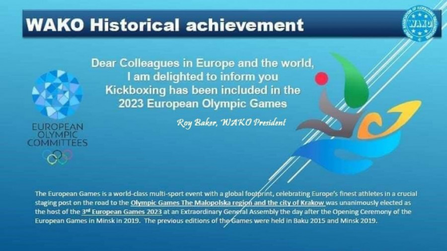 Foto: Kik boks savez SrbijeKik boks je uključen u sportski program Evropskih Olimpijskih igara koje će biti održane u Krakovu u Poljskoj 2023. godine.