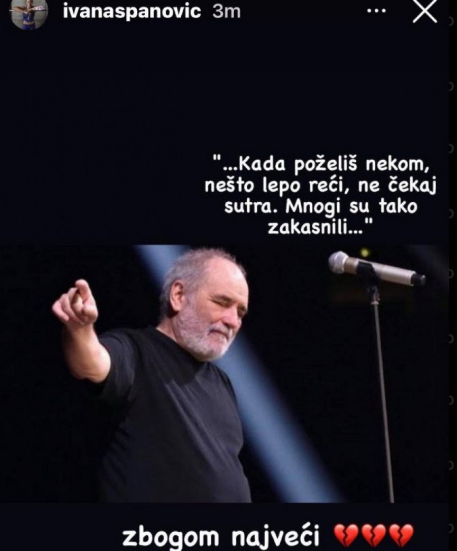- Kada poželiš nekom, nešto lepo reći, ne čekaj sutra. Mnogi su tako zakasnili - napisala je Ivana Španović.