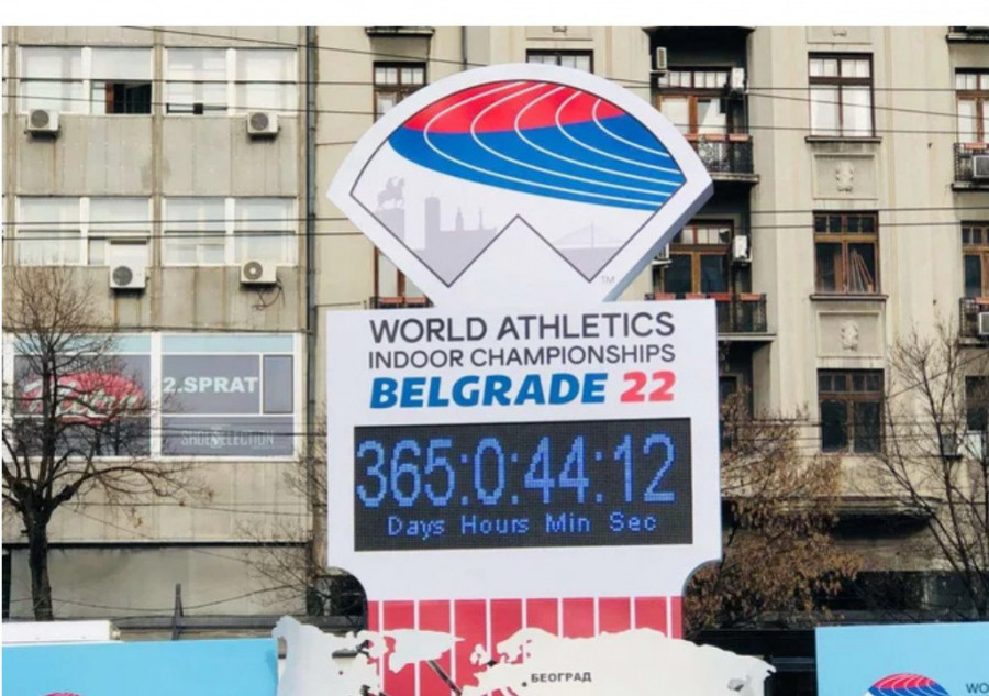 Foto: Ministarstvo omladine i sportaMinistar omladine i sporta Vanja Udovičić učestvovao je u simboličnom aktiviranju javnog sata sa nazivom „Svet na stazi” na Trgu Terazije, čime je zvanično započeto odbrojavanje 365 dana do Svetskog atletskog prvenstva u dvorani, koje će se održati u Beogradu.