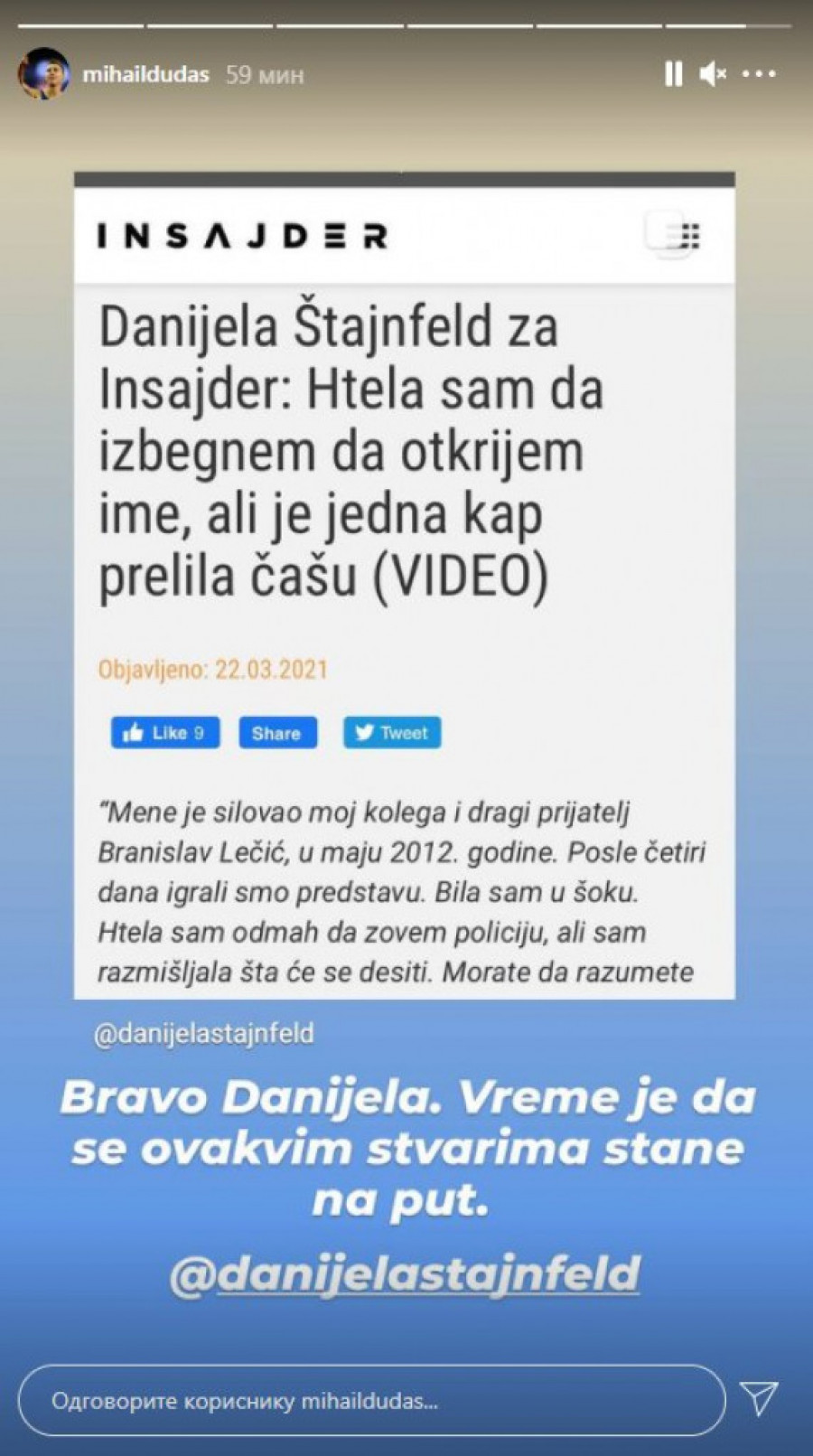 - Bravo Danijela, vreme je da se ovakvim stvarima stane na put - napisao je Dudaš.