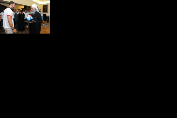 Foto: TanjugPodsetimo, Vučić je danas predao olimpijsku zastavu vaterpolisti Filipu Filipoviću, a "delfini" su dobili blagoslov i od partijarha Porfirija.