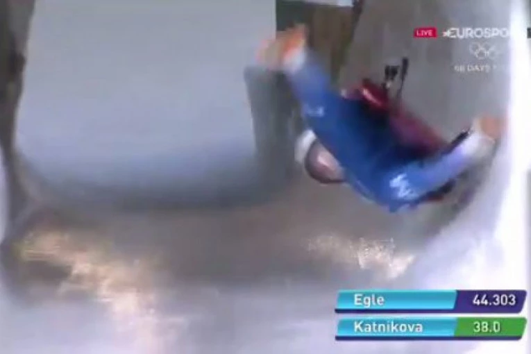 Foto: Twitter.com/Eurosport UKVerifiedKatnikova je u jednom zavoju otišla previsoko i prevrnula se sa sankama na stomak i lice!