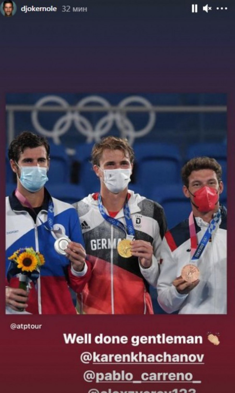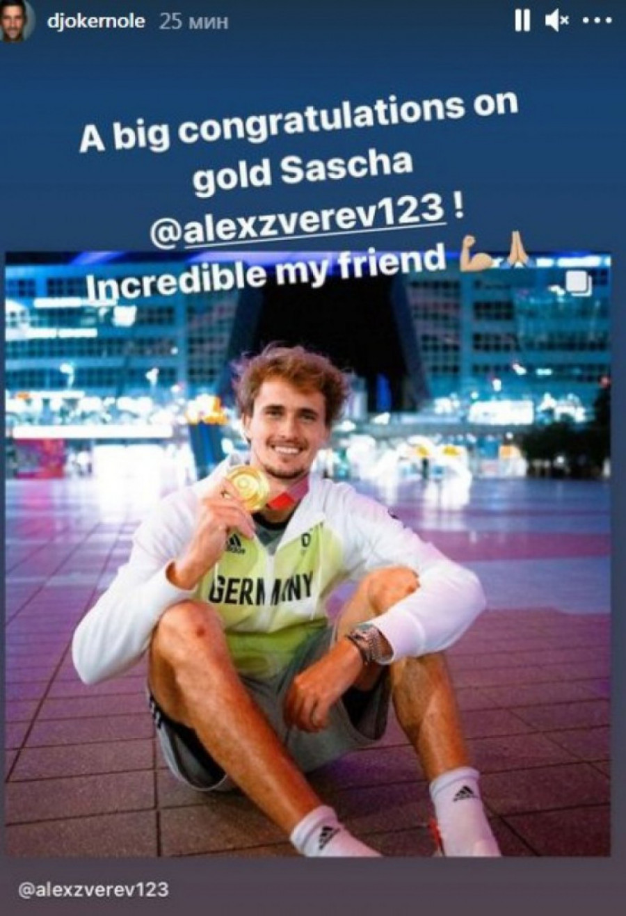 Zlato na Olimpijskom turniru u Tokiju osvojio je Nemac Aleksandar Zverev, a Novak je iskoristio priliku da mu uputu čestitike za prvo zlato.