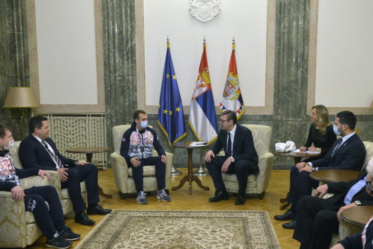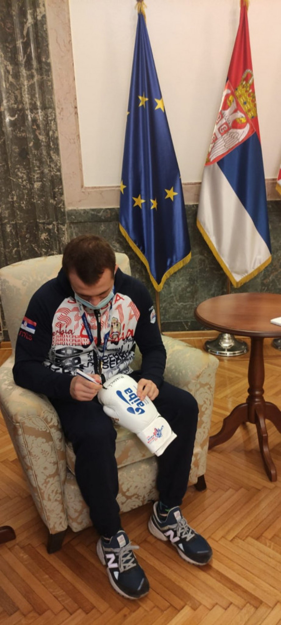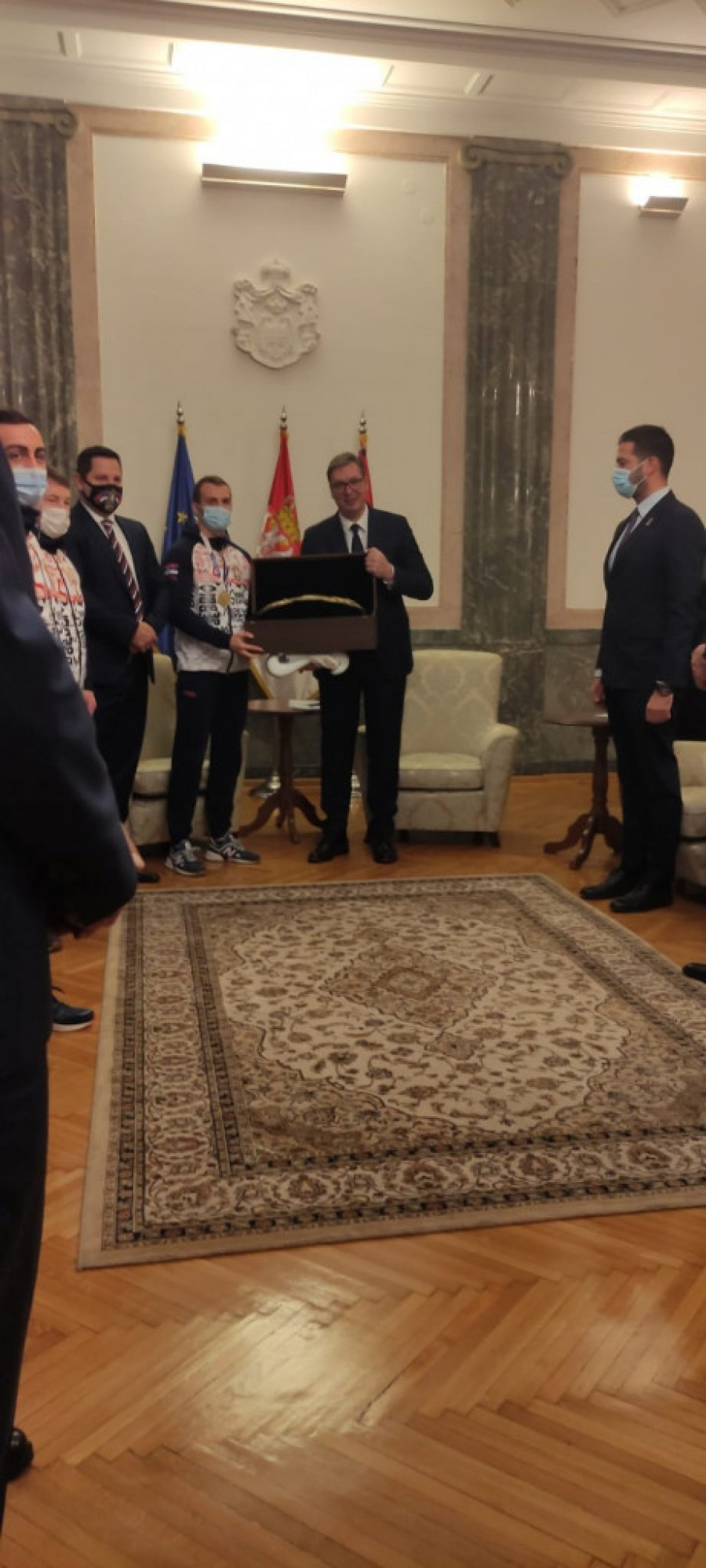 Na prijemu kod predsednika bili su i prvi čovek Bokserskog saveza Srbije Nenad Borovčanin, selektor Milan Piperski i stručni štab, ministar omladine i sporta Vanja Udovicć, predsednik Olimpijskog komiteta Srbije Božidar Maljkovic, kao i čelni ljudi TV Arena sport, koja je radila prenose šampionata sveta.