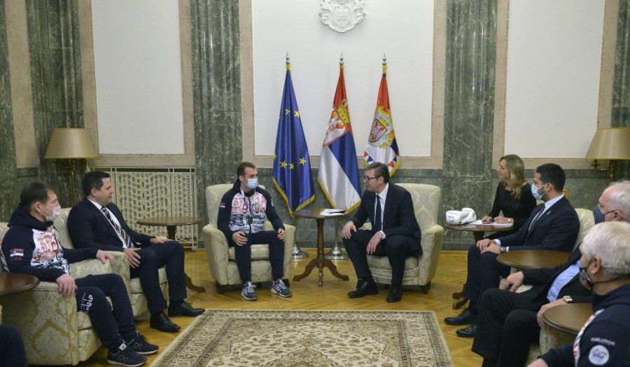 Predsednik Srbije Aleksandar Vučić ugostio je danas boksera Vladimira Mirončikova i delegaciju Bokserskog saveza Srbije i čestitao na osvojenoj bronzanoj medalji i sjajno organizovanom šampionatu sveta.