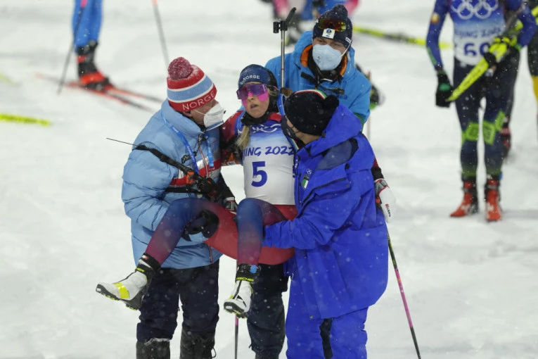 Norveška bijatlonka Ingrid Landmark Tandrevold uplašila je sve ljubitelje ZOI kada se po ulasku na cilj srušila u sneg!