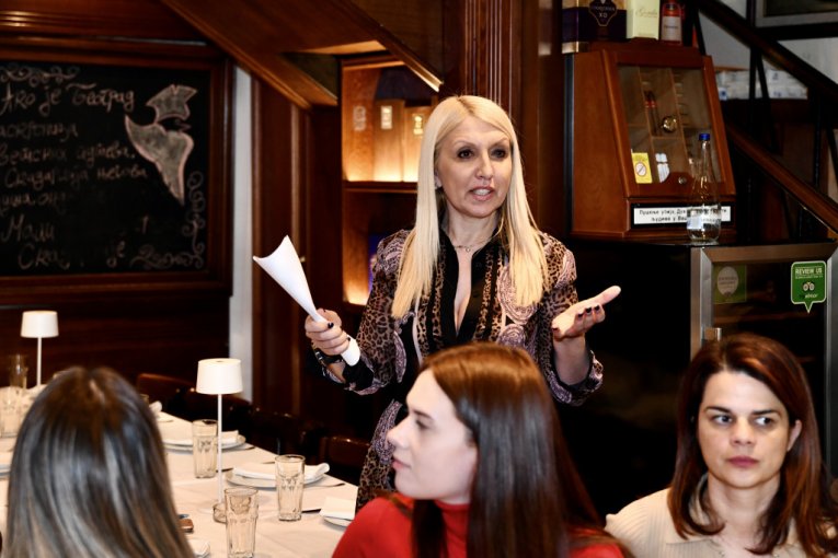 - Za početak se zahvaljuem svima što ste došli. Stvarno je lepo videti vas u ovolikom broju, jer mislim da je klub kao što je Crvena zvezda to i zaslužio. Kao što sam veći istakla – kako ste vi tu za nas tako mislim da je i jedan lep momenat da smo i mi tu za vas. Da vas malo okupimo i počastimo i da svi zajedno proslavimo uspeh ove godine. Ja mogu da kažem da sam presrećna i preponosna zato što sam pre 11 godina sa Crvenom zvezdom osvojila duplu krunu kao igračica i isto tako izašla da proslavim to sa navijačima sad imam tu čast da to ponovim i u nekoj drugoj ulozi u jednom lepom zajedništvu. Ne znam šta sad da kažem da ne ponavljam prethodne sagovornike, ali zaista mislim da smo pokazali da je Zvezda opet na pravom putu i ja sam preponosna što sam deo te priče, koja će pokušati od mlađih kategorija pa sve do seniorske ekipe da pravi jednu zdravu priču, da iznosi igrače na pravi način i da još malo uživamo u ovom uspehu koji su devojke napravile. Kao što smo i rekli ne treba zanemariti da su naši seniori cele sezone bili na prvoj poziciji. Nažalost stali su u polufinalima, al i definitivno nisu stali za neke naredne sezone i ja se nadam da će nam se i oni pridružiti u ovom fenomenalnom uspehu već.