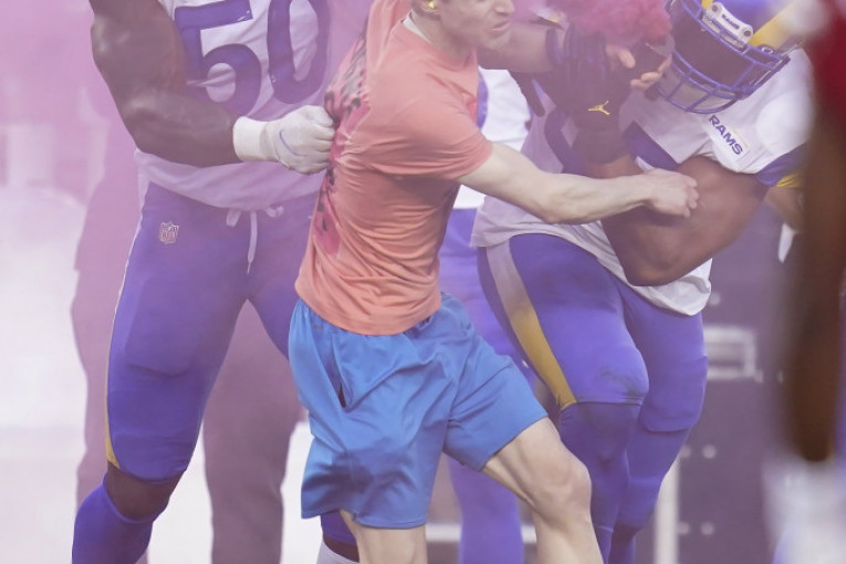 Tokom jučarašnjeg meča u kojem su se sastale ekipe San Franciska i Los Anđeles Remsa, jedan navijač je upao na teren sa upaljenom dimnom bombom što je svakako izazvalo nevericu u publici.