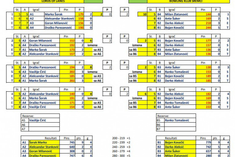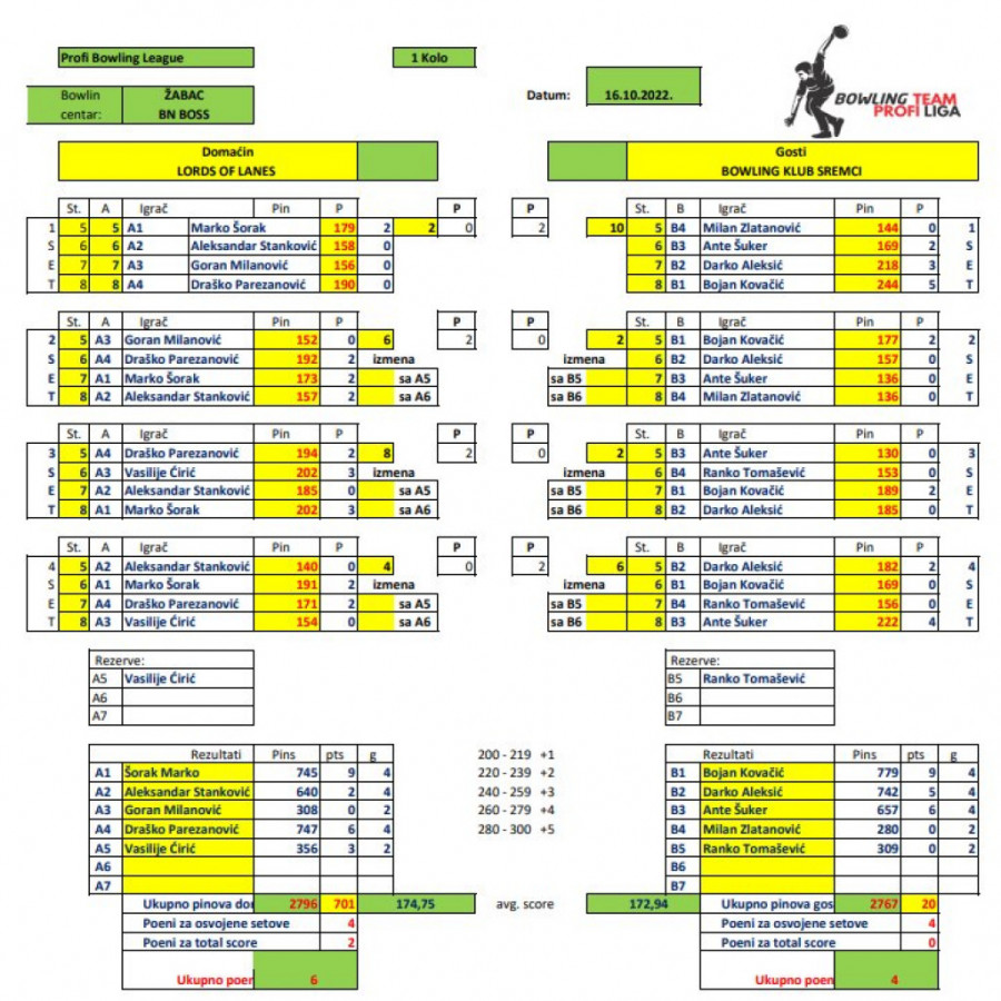 U Dramatičnoj završnici gde su pobednika odlučivali veći broj pinova LORDS OF LANES 2796 – 2767 SREMCI BOWLING TEAM, domaćin je pobedio za 29 pinova razlike.