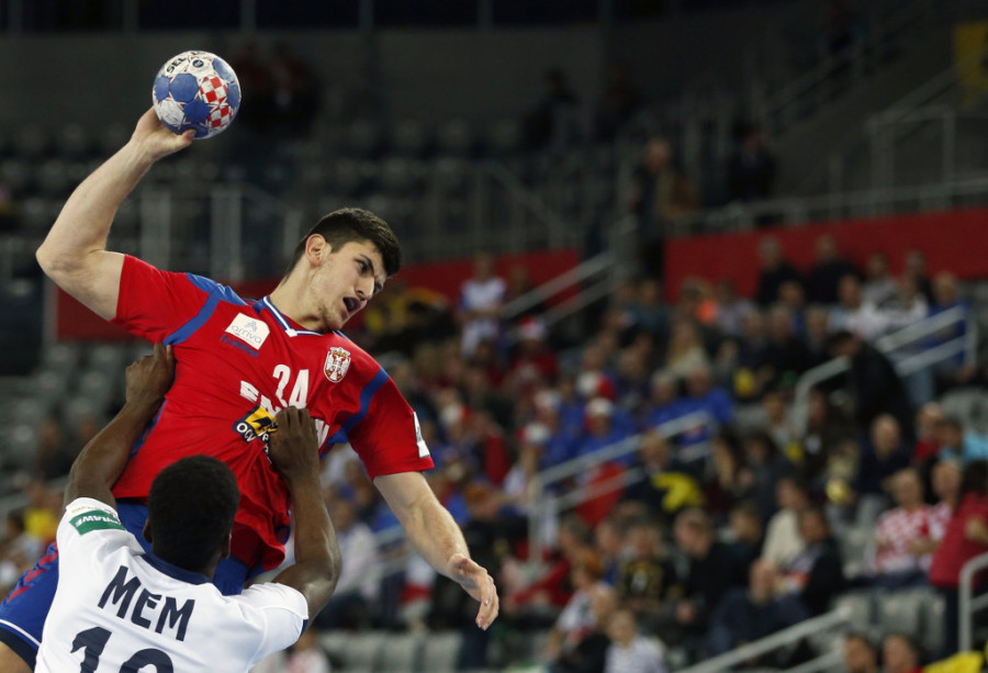 Srbija je bila ravnopravan rival sa Francuskom samo u prvih 15 minuta prvog poluvremena. Francuska se potom odlepila na plus tri gola, 12:9. Naši rukometaši su pravili veliki broj grešaka, a prednost francuskog tima je rasla iz minuta u minut. Francuska je prvih 30 minuta rešila u svoju korist rezultatom 19:12.