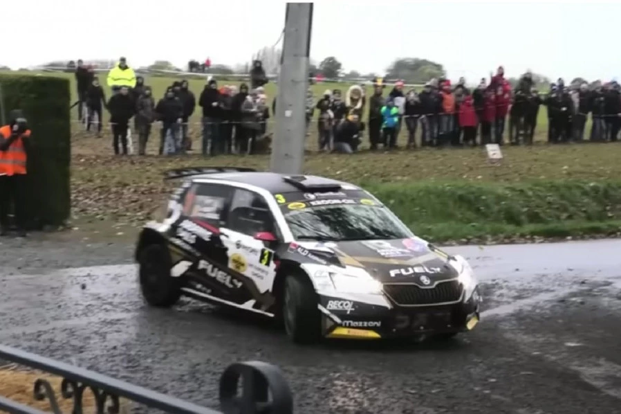 Portal "Rallit.fi" javlja da je belgijska posada Emerik Reri - Fabris Anri izgubila kontrolu nad Škodom Fabijom R5 u kišnim uslovima i sletela sa puta.