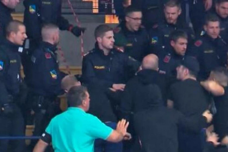 Zbog sukoba srpskih navijača i policije, subotnja utakmica je privremeno bila prekinuta, dok čuvari reda nisu uspeli da izbace gostujuće navijače iz dvorane, prenose austrijski mediji. Situacija je eskalirala kada su počeli da bacaju predmete na domaće navijače.