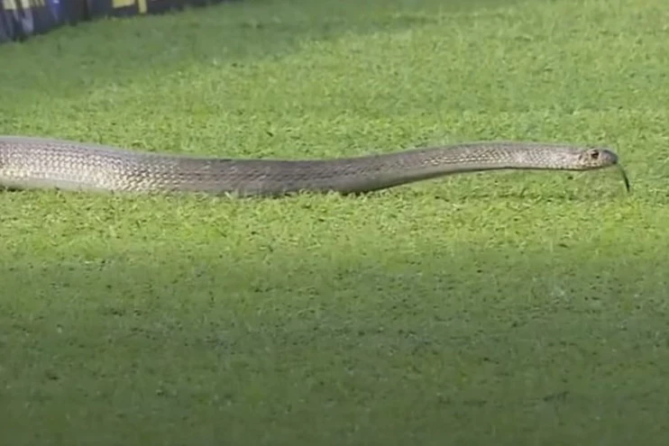 Nimalo prijatna scena viđena je na meču Premijer lige Šri Lanke u kriketu, gde je ogromna zmija iznenada počela da gmiže po terenu.