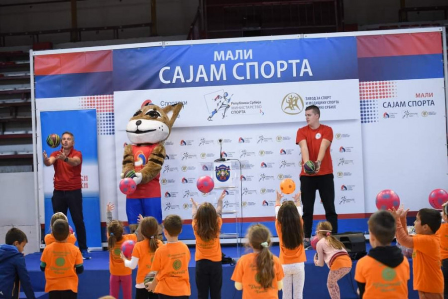 U Čačanskoj sportskoj hali kraj Morave đaci osnovnih škola i predškolci PU "Radost" uživali su u Malom sajmu sporta, devetom koji u 2023. godine organizuju Sportski savez Srbije i Ministarstvo sporta.