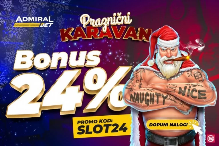 Zimski praznici nam se bliže, sve je više kišnih i oblačnih dana, dok su temperature u blagom padu, ali ne i bonusi u AdmiralBetu! Naime, ovog decembra nas očekuje promo kod SLOT24, koji sa sobom donosi 24% slot bonusa na prvu dnevnu uplatu depozita, svakog dana do 10. januara do ponoći. Kladionica AdmiralBet je ovu promociju spremila kako bismo u što boljem raspoloženju otvorili prazničnu sezonu, a bonus je dostupan svima sa otvorenim korisničkim nalogom na AdmiralBet.rs.