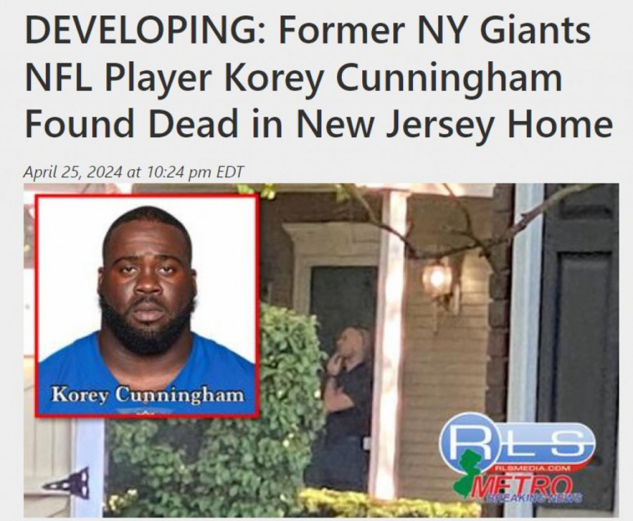 Nekadašnji igrač američkog fudbala Kori Kaningem pronađen je u četvrtak mrtav u svom domu u Nju Džersiju, preneli su američki mediji.