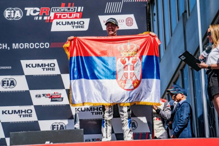 Dušan Borković, najbolji srpski automobilista svih vremena, ponosno je doneo svetski podijum Srbiji na FIA TCR Svetskom prvenstvu u Marakešu. U drugoj trci, Dušan je krenuo sa treće pozicije i svojom pametnom i izuzetno brzom vožnjom uspeo je da održi poziciju i popne se na svetsko postolje.