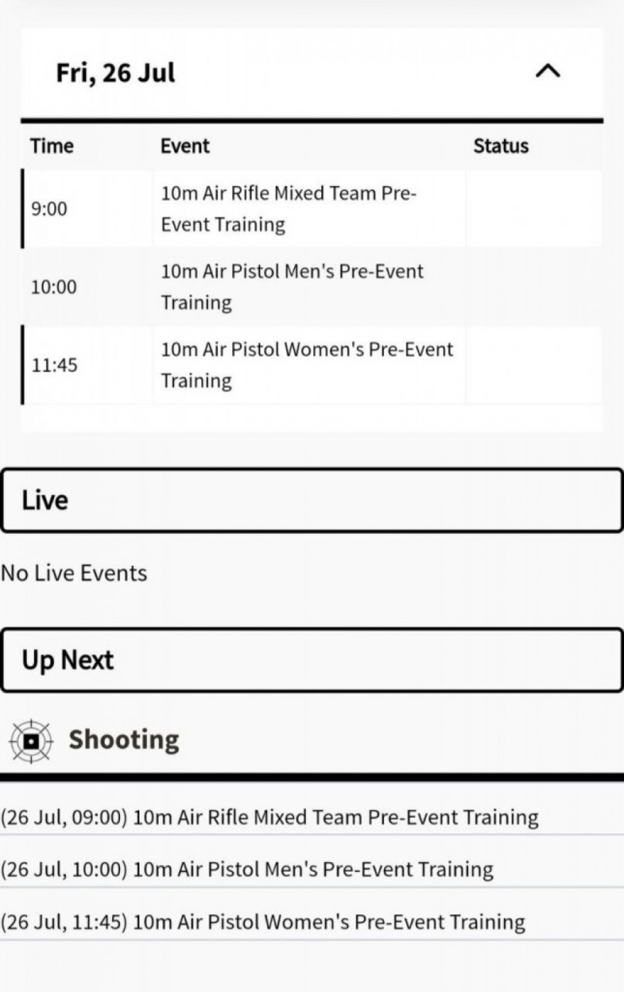 Tako je sa početkom od 9 časova započeo trening stelaca u disciplini vazdušna puška mešovitih timova, a zatim su se u streljani pojavili prvo muškarci, a zatim i dame u konkurenciji vazdušnog pištolja.