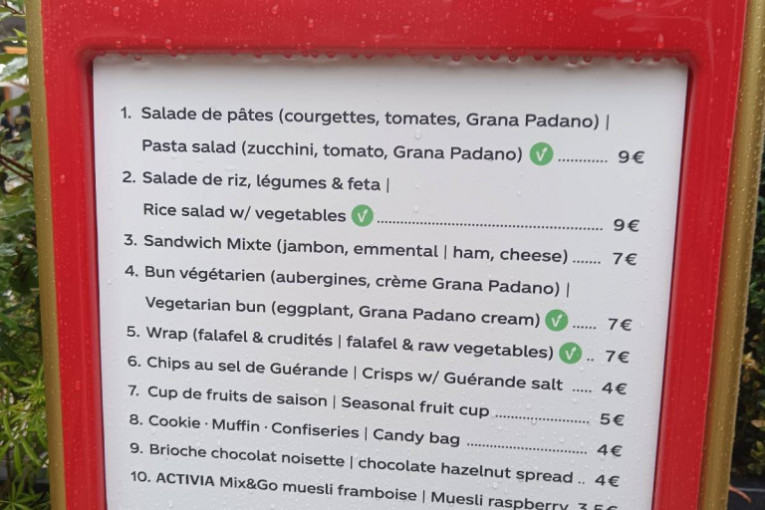 Ako biste, pak, da se zasladite, za jedan voćni kup dali biste pet evra, dok četiri iznosi cena mafina i klasičnog kolačića. Najjeftiniji u ovoj radnji je musli od maline koji košta tri i po evra. S obzirom na to kolike su cene trenutno u nekim zemljama, ovo jeste mnogo, ali da kažemo prihvatljivo.
