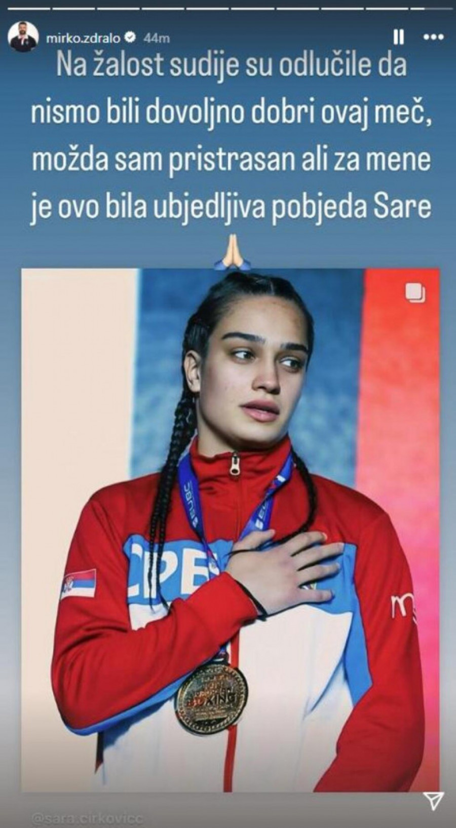 - Na žalost, sudije su odlučile da nismo bili dovoljno dobri za ovaj meč. Možda sam pristrasan, ali za mene je ovo bila ubedljiva pobeda Sare - napisao je Ždralo na instagramu.