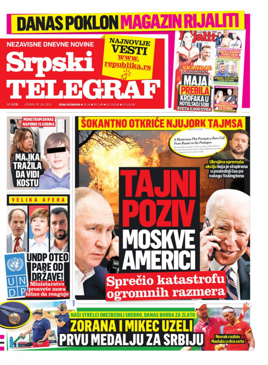 Srpski telegraf u izdanju za utorak 30. jul donosi pregršt važnih i interesantnih priča!