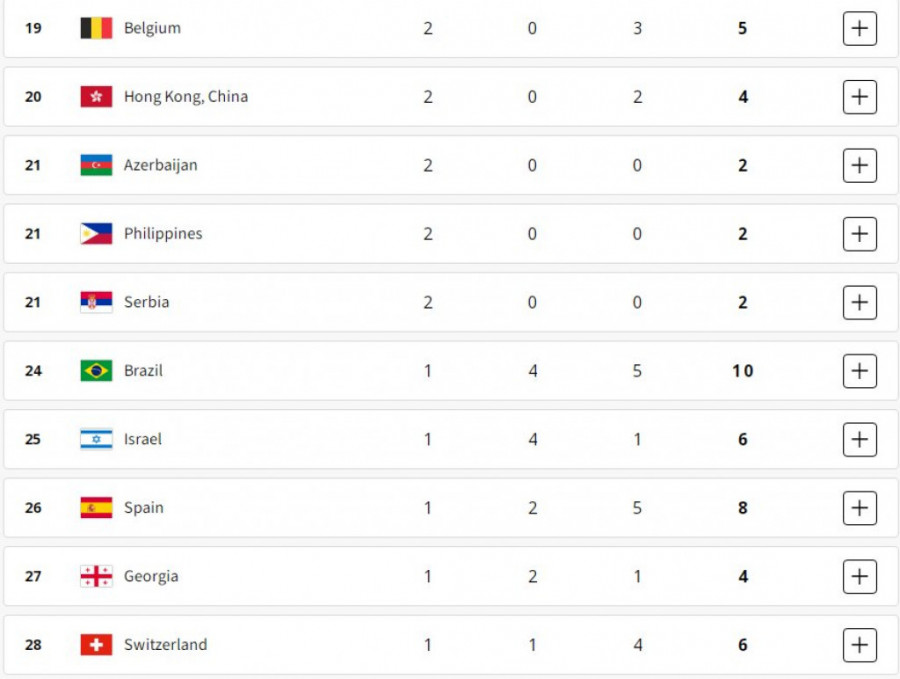 Posebno se mora napomenuti da je Srbija u ovom momentu bolje plasirana od sportskih velesila kao što su Brazil i Španija koje su stigle samo do jdnog najsjajnijg odličja i u ovom momentu zauzimaju pozicije 24. i 26.