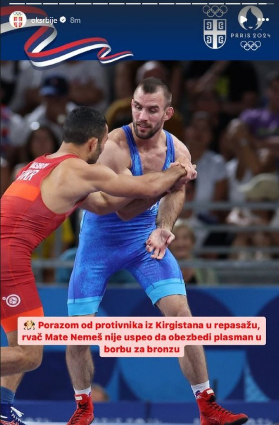 Kirgistanski rvač Amantur Ismailov pokazao je izuzetno umeće u borbi protiv našeg reprezentativca Matea Nemeša, ostvarivši ubedljivu pobedu rezultatom 8:0 na rvačkom turniru Olimpijskih igara u Parizu.