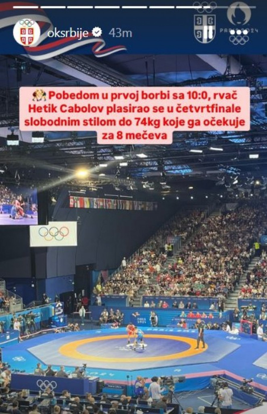 Reprezentativac Srbije u rvanju, Hetik Cabolov, ostvario je značajan uspeh plasiravši se u četvrtfinale Olimpijskih igara u Parizu u kategoriji do 74 kilograma slobodnim stilom.