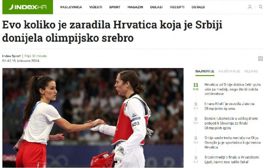 Ostvarenje Aleksandre Perišić sa velikom pažnjom ispraćeno je i u komšiluku, a hrvatski portali su po ko zna koji put pokušali da ostvarenje srpskih sportista pripišu sebi. Portal "Index.hr" u naslovu izveštaja sa taekvando borilišta, ističe:
