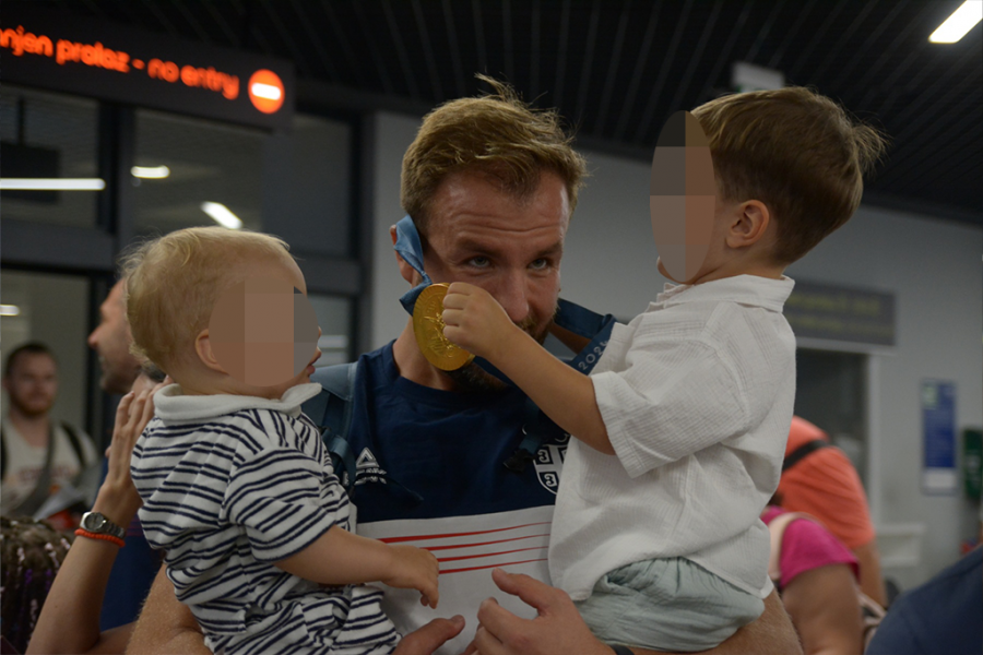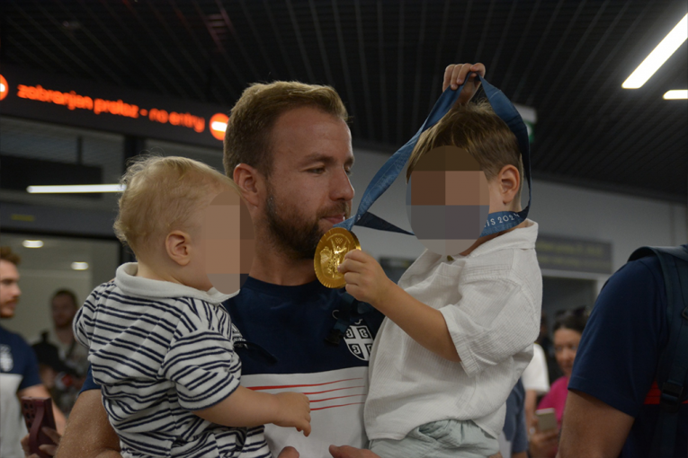 "DELFINČIĆI" KONAČNO U TATINIM RUKAMA! Ovako su vaterpolisti IZGRLILI dečicu po povratku iz Pariza (FOTO GALERIJA+VIDEO)
