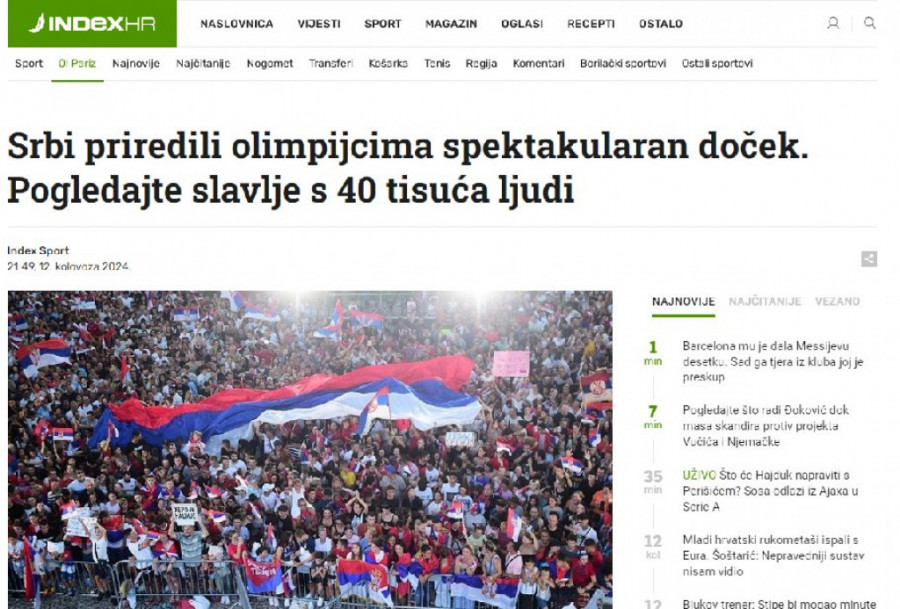 U daljem tekstu "Index.hr" je nabrojao sve osvajača medalja koji su Srbiji doneli olimpisjka odličja posebno apostrofirajući doček koji je priređen Nikoli Jokiću, ali je interesantno da niti jednom rečju nisu pomenuli trenutak kada je na balkon stupio najveći među nama, Novak Đoković.