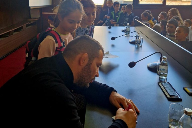 Sportski šampioni Tijana i Davor su nakon razgovora delili autograme i fotografisali se sa decom za uspomenu, pa se svi nadamo da će deca nastaviti da uzore traže među sportistima i izrasti u dobre ljude.