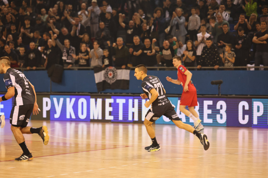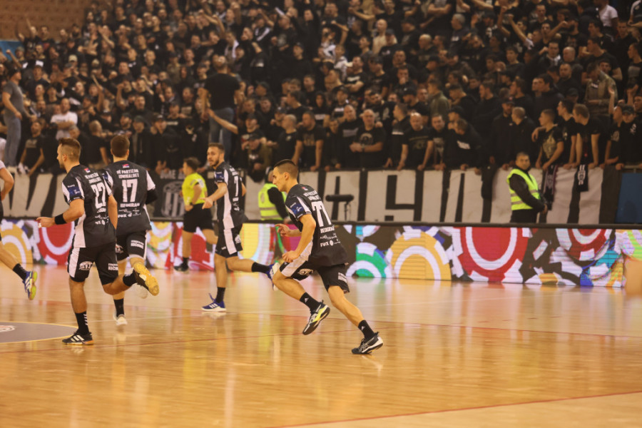 Ni direktan crveni karton Crnoglavca u 36. minutu nije poremetio naše momke. Drugo poluvreme proteklo je u nešto grubljoj igri, ali je Partizan AdmiralBet uz gromoglasnu podršku sa tribina "lomio" protivnika sve do dvocifrene razlike. Šotić je ukradenim loptama "nagradio" saigrače brzim kontrama iz kojih su postizani laki golovi. Anđelković je nastavio u istom ritmu, Mićić briljirao uz akrobacije na crti, a prvi pogodak u crno-belom dresu upisao Radojković. Na kraju ubedljiv trijumf crno-belih, rezultatom 30:20, kojim je obezbeđeno proleće u Evropi.