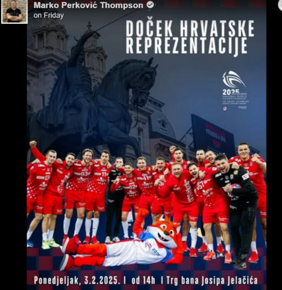 - Što se tiče odabira muzičkih izvođača, ističem da se prilikom organizacije dočeka prvenstveno uzimaju u obzir želje sportista i sportskih saveza jer su upravo njihovi uspesi povod okupljanja građana i navijača. Hrvatski rukometni savez i hrvatski reprezentativci jasno su izrazili želju da na dočeku, uz druge izvođače, nastupi i Marko Perković Tompson, čija je pesma "Ako ne znaš što je bilo" postala svojevrsna himna ove generacije rukometaša - rekao je Plenković u otvorenom pismu koje je preneo zagrebački Večernji list.