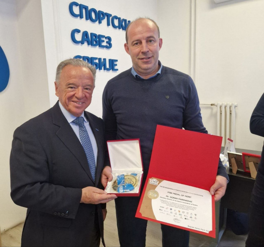 Predsednik Svetske IFBB federacije uručio je predsedniku i generalnom sekretaru Sportskog saveza Srbije medalje u znak zahvalnosti za doprinos u razvoju i promociji bodi-bildinga i fitnesa u Srbiji, kao i knjigu o uspesima ovog sporta. Štefanek i Marinković su gospodinu Santohi zahvalili na poseti i poručili da je drag prijatelj Srbije, a za uspomenu su mu poklonili knjigu o znamenitim ličnostima Srbije.