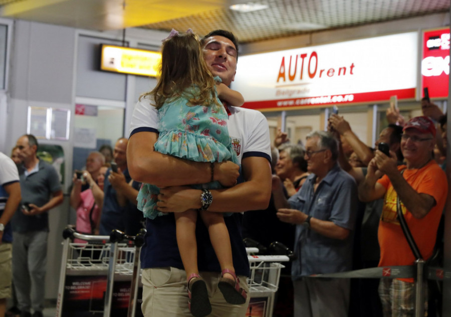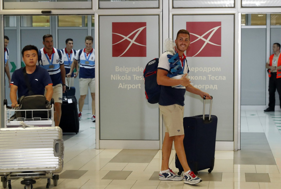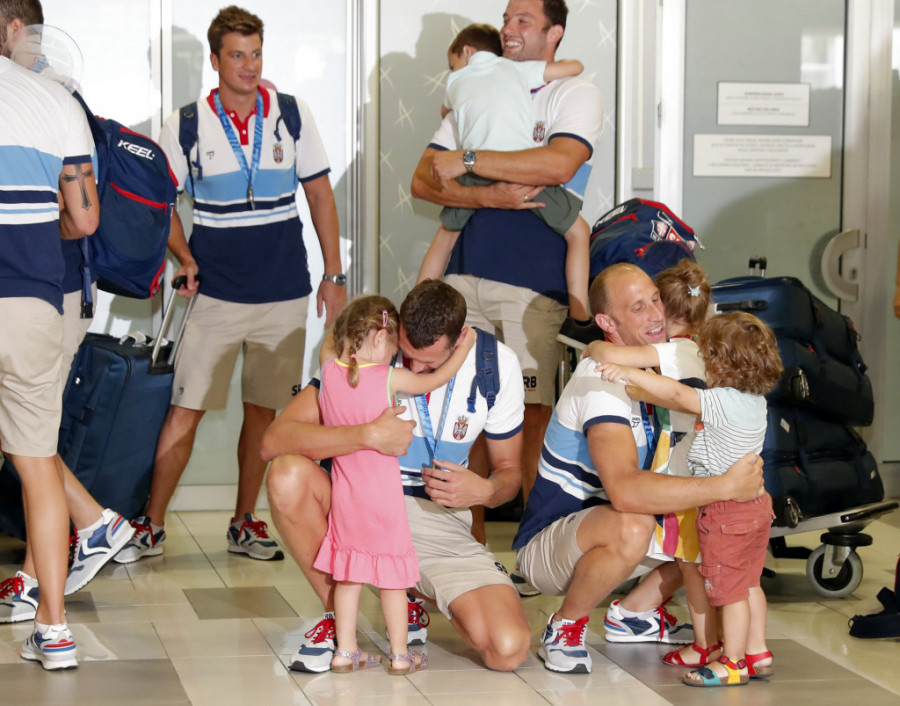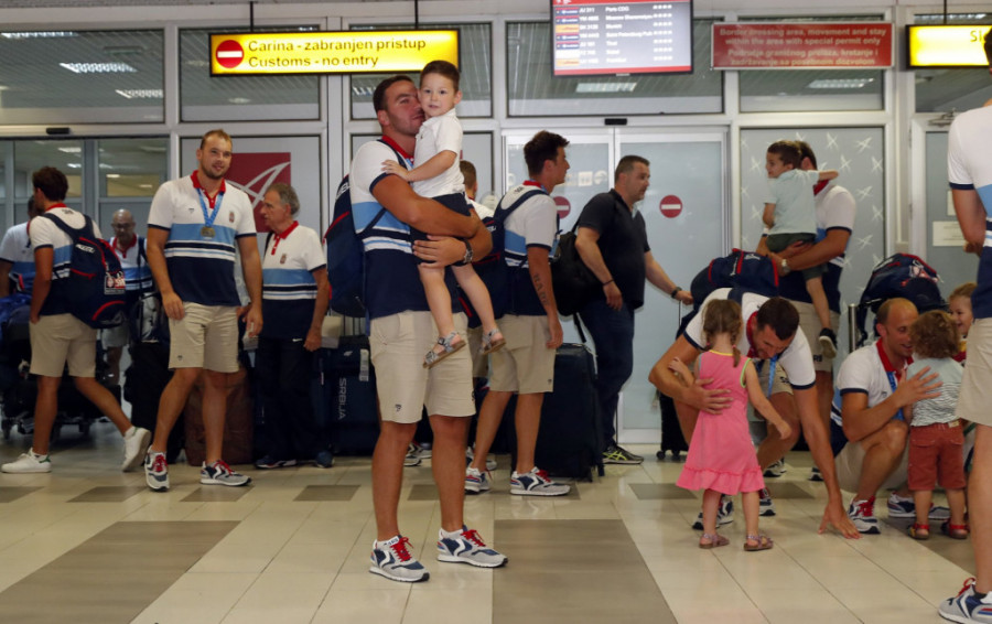 Vaterpolisti Srbije dočekani su na aerodromu Nikola Tesla, gde im je priređen i vodeni luk. Oni su četvrti uzastopni put uspeli da osvoje zlatnu medalju na Evropskom prvenstvu. Ovaj put su u finalu savladali domaćina Španiju posle peteraca. A po sletanju u Beograd dočekale su ih porodice kao i obožavaoci i poštovaoci.