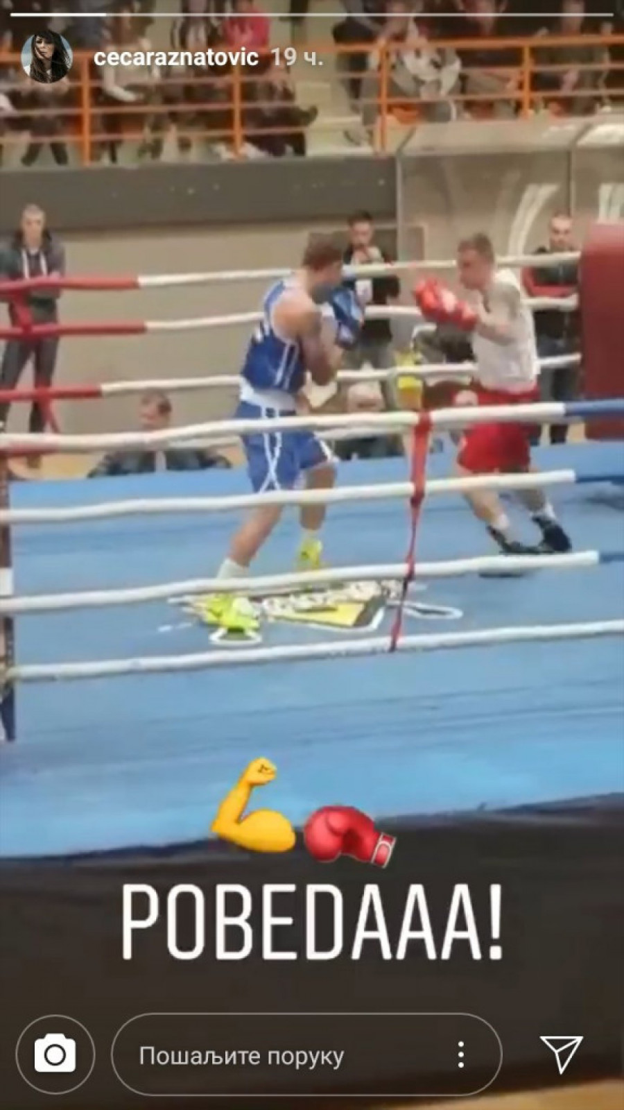 Ponosna mama, pevačica Svetlana Ceca Ražnatović, odmah se pohvalila na društvenim mrežama. Objavila je video na kom se vidi nokaut i napisala: "Pobedaaa!"