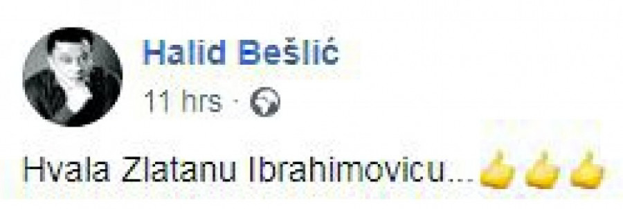 Halid Bešlić: Zlatane, hvala ti! Oduševljenje jer je njegov hit stigao do svlačionice LA Galaksija i višemilionskog auditorijuma nije krio ni Halid Bešlić. - Hvala Zlatanu Ibrahimoviću - napisao je pevač na svom Fejsbuk profilu uz pomenuti fudbalerov video za koji je saznao od prijatelja. |
