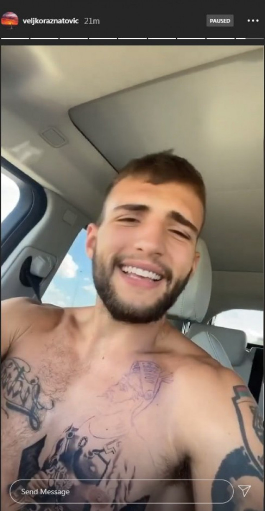 Naime, Veljko je na svom Instagram profilu objavio stori kako se vozi u kolima, a pošto je bio bez gornjeg dela odeće, jasno se vidi da je nova tetovaža već počela da se radi.