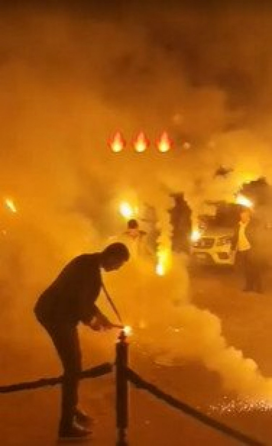 U jednom trenutku večeri, ispred poznatog beogradskog restorana, gde se održavala svadba, Vujadin je sa zvanicama izašao i napravio bakljadu za pamćenje.