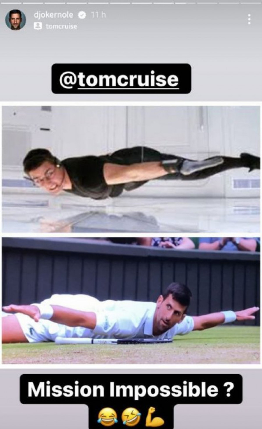 Nakon susreta, Novak Đoković je na svom Instagram profilu objavio fotografiju navedenog detalja uz sliku slavnog američkog glumca Toma Kruza i komentar:
