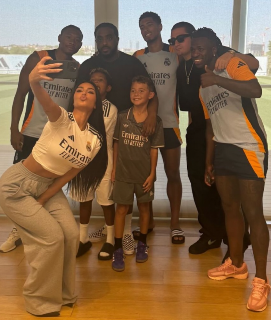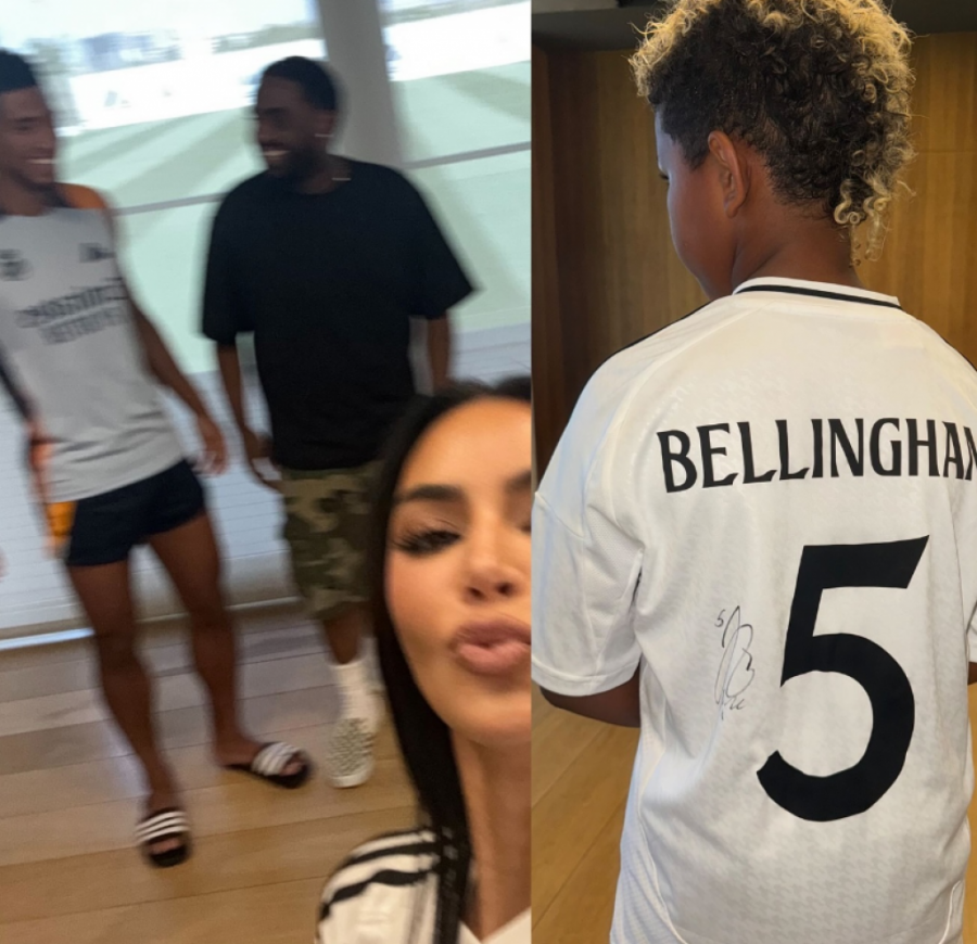 Kim Kardašijan nedavno je posetila Madrid, gde je posetila trening centar Real Madrida sa svojim sinom Seintom. Pored brojnih poznatih fudbalera koje je tamo srela, posebno se istakao susret sa Džudom Belingemom, koji je potpisao autogram na dresu za njenog sina. Belingem je takođe lice brenda donjeg veša Skims, kojeg je osnovala Kim Kardašijan.