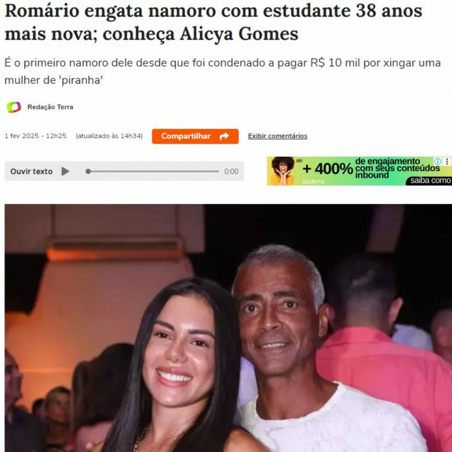 Legendarni brazilski fudbaler pedesetdevetogodišnji Romario onovo je postao tema medija zbog svoje ljubavne veze sa dvadesetjednogodišnjom studentkinjom Alisijom Gomeš.