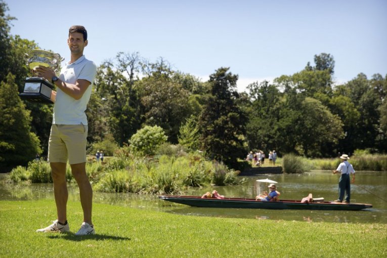 Tradicionalno dan nakon osvajanja Australijan opena Novak Đoković je imao priliku da prošeta trofej po čuvenoj Rojal botanik bašti u Melburnu gde je uživao u zelenilu i fotografisao se sa navijačima.