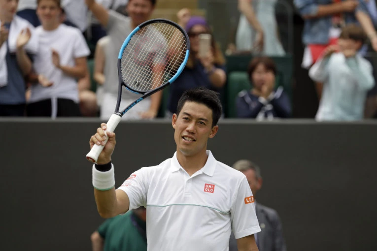 Foto: Tanjug/APNišikorije do jubilarnog trijumfa došao za nešto manje od dva sata igre. Kei je tako četvrti put u karijeri obezbedio mesto u osmini finala Vimbldona.