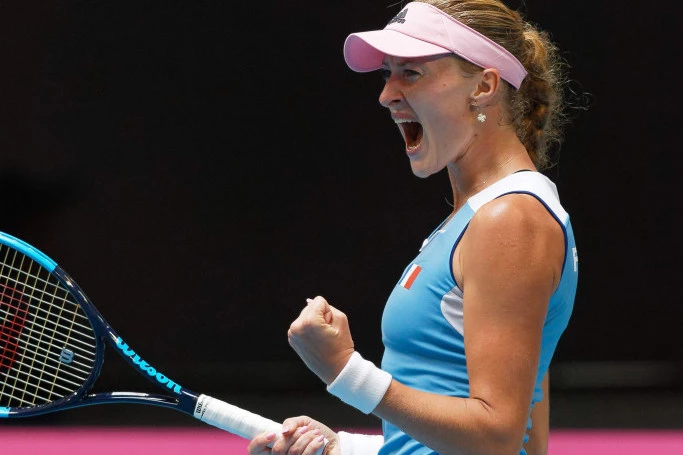 Foto: Tanjug/APKristina Mladenović slavila je protiv Ešli Barti sa 2:1 u prvom meču i tako donela vođstvo Francuskoj, ali samo na kratko.