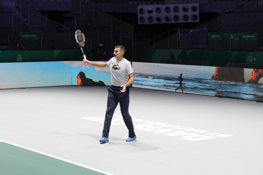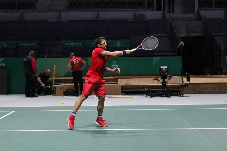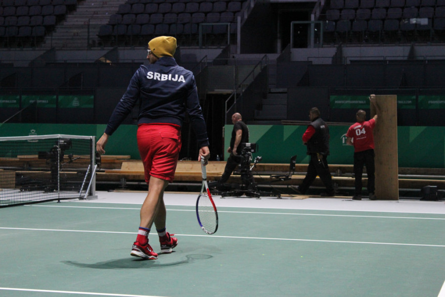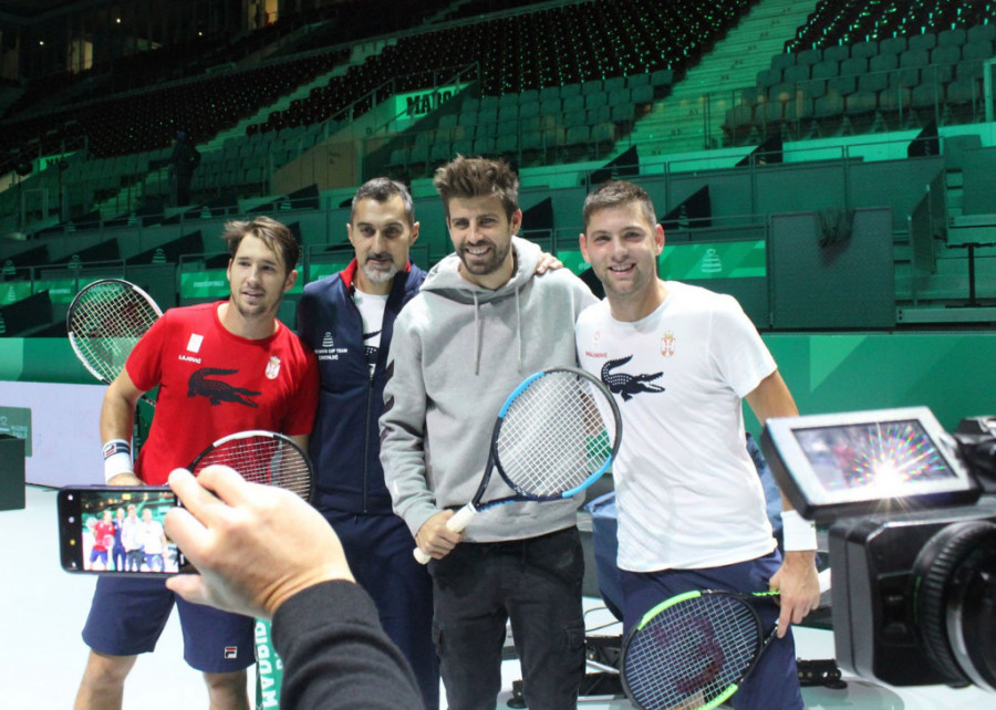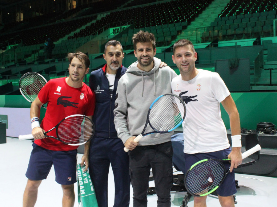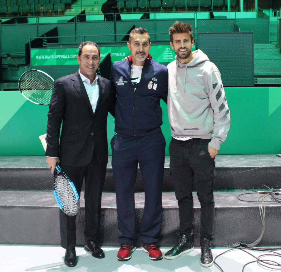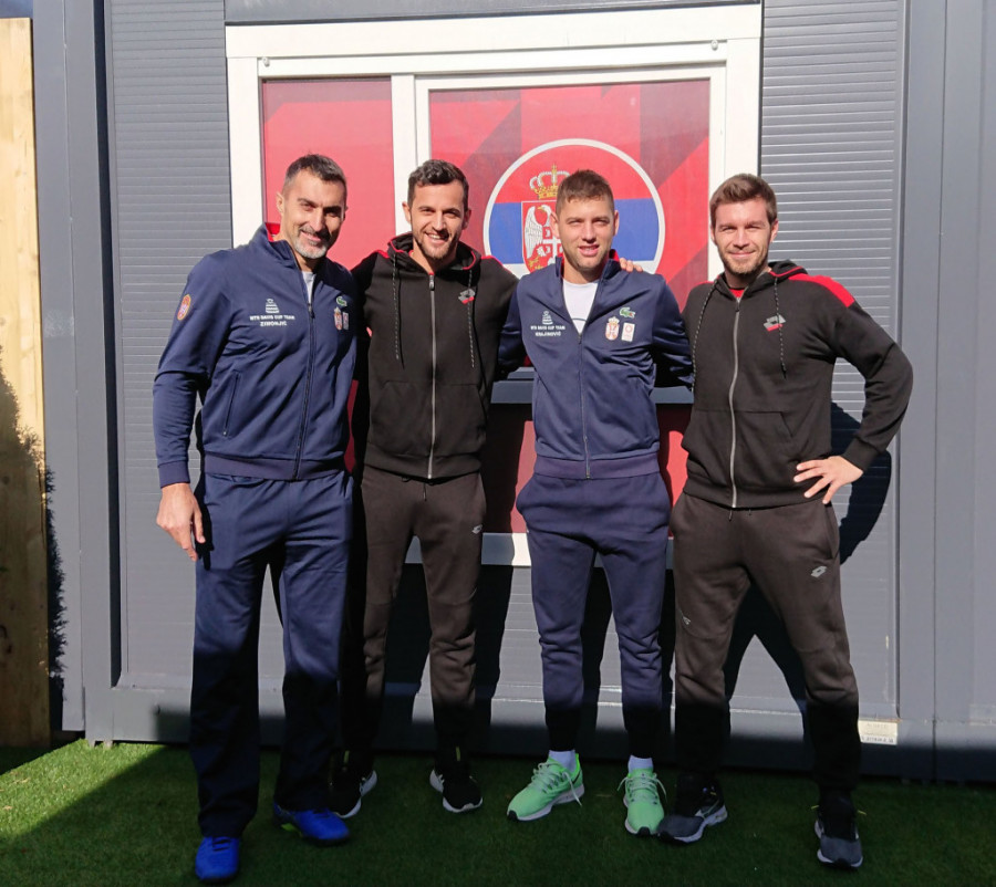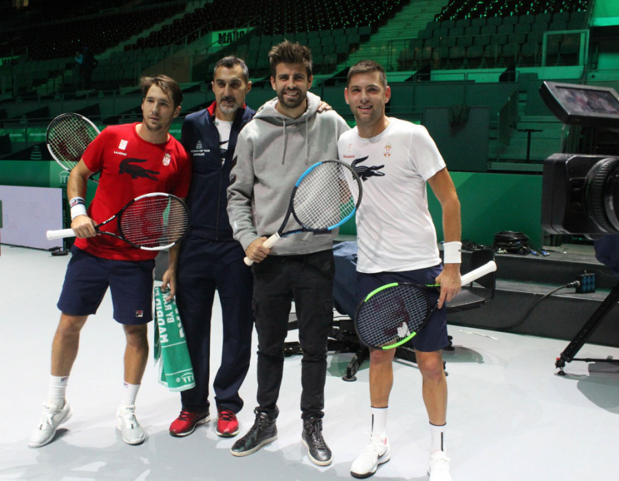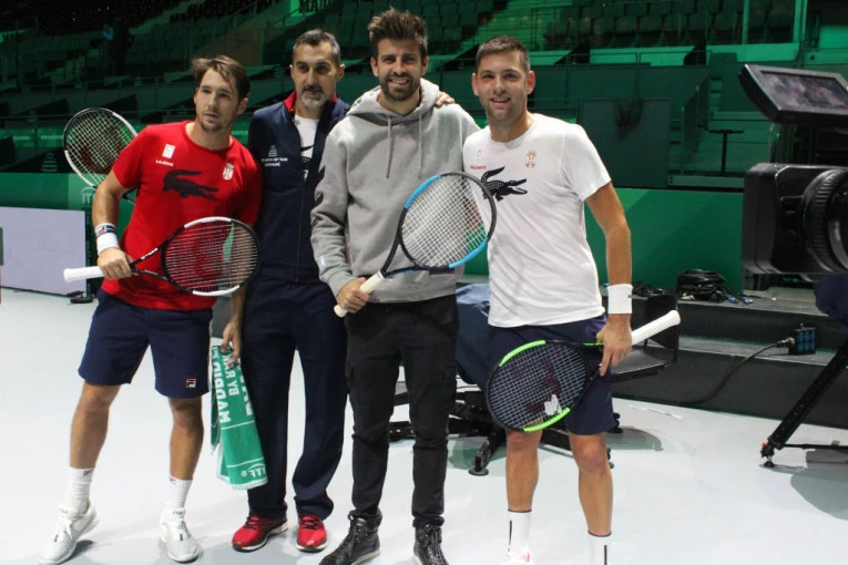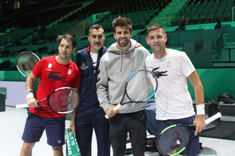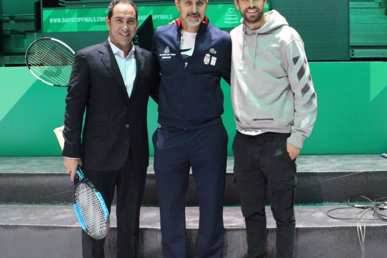 Trening reprezentativaca Srbije posetili su direktor finalnog turnira Dejvis kupa Albert Kosta i predsednik Kosmos grupe i fudbaler Barselone Đerar Pike.